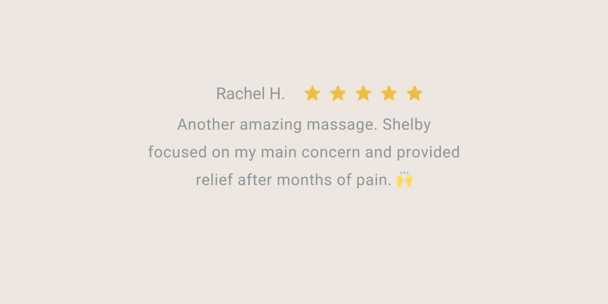 Another amazing massage. Shelby focused on my main concern and provided relief after months of pain. 🙌