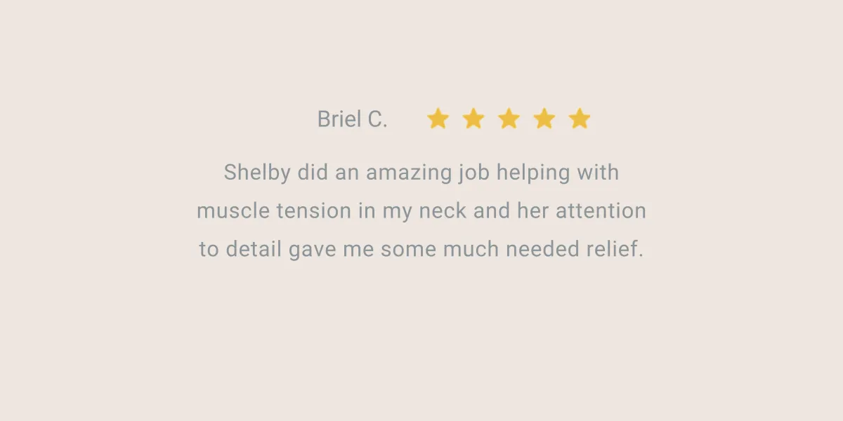 Shelby did an amazing job helping with muscle tension in my neck and her attention to detail gave me some much needed relief.